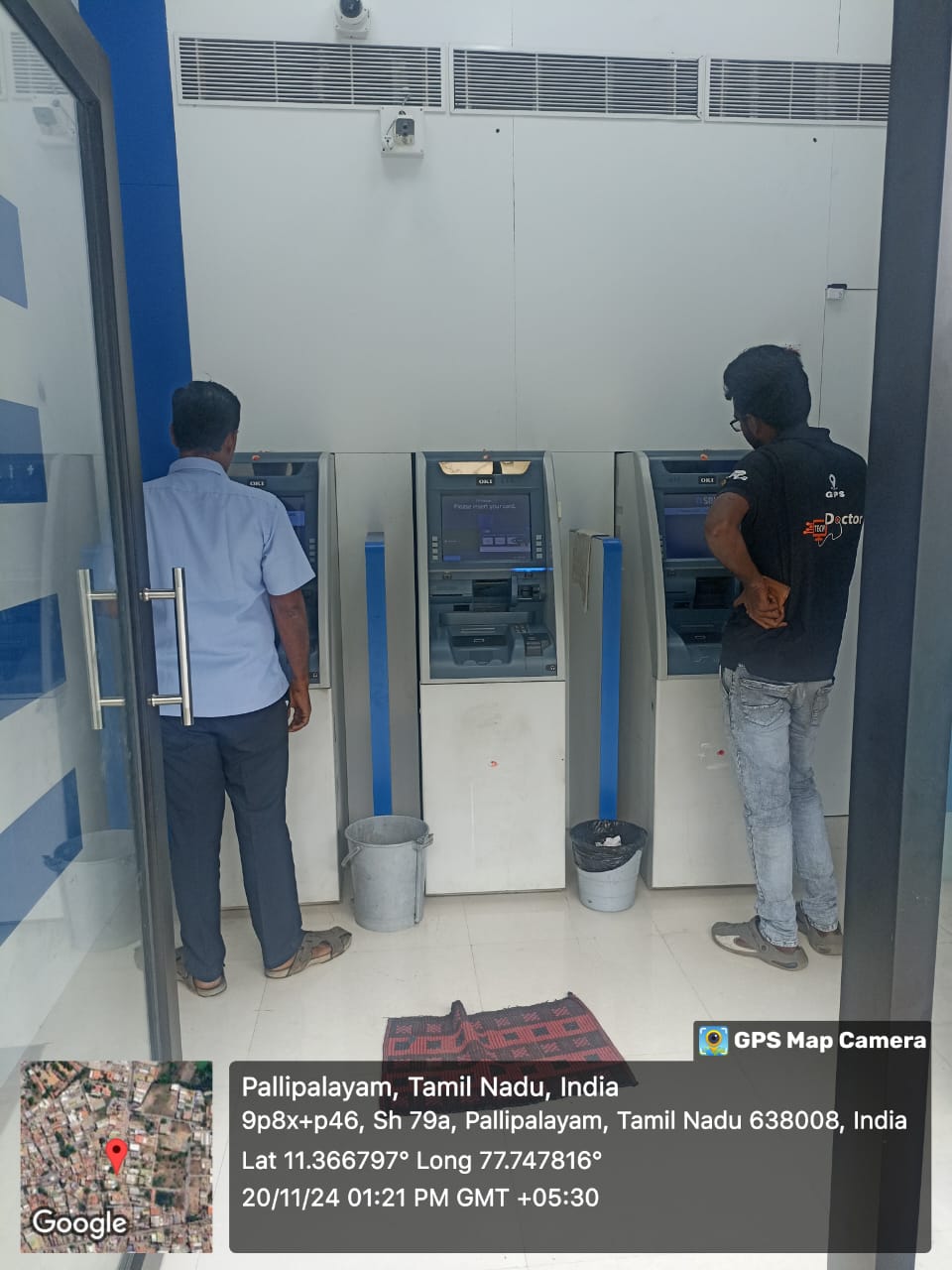 நாமக்கல் மாவட்டம் குமாரபாளையம் தாலுக்கா பள்ளிபாளையம் பகுதியில் உள்ள SBI வங்கி ஏடிஎம் சேவை தற்காலிகமாக பல நாட்களாக அப்பகுதி ரோடு வேலை நடைபெற்று வந்த காரணத்தினால் பல மாதங்களாக ஏடிஎம் சேவை குறைபாடு இருந்ததாக பொதுமக்கள் வாயிலாக ABGP அமைப்படும்…